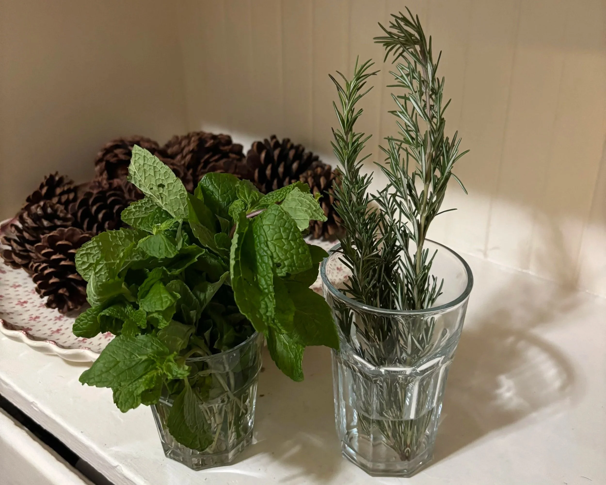 trim stems. place in a jar with 1–2 inches water. loosely cover with a bag. refrigerate. change water every few days.